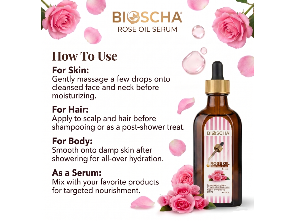 Toto přírodní olejové sérum s esenciálním růžovým olejem navrací pokožce její přirozenou rovnováhu a dodává pleti jasnější a vitálnější vzhled. Díky bohatému obsahu přírodních složek a antioxidantů účinně podporuje regeneraci pokožky a viditelně zlepšuje její pružnost. Sérum je mimořádně účinné při problémech se suchou pletí, kterou hloubkově rozjasňuje a sjednocuje její tón. Skvěle se hodí také pro péči o vlasy, kterým dodává objem, posiluje je a usnadňuje jejich následnou úpravu.